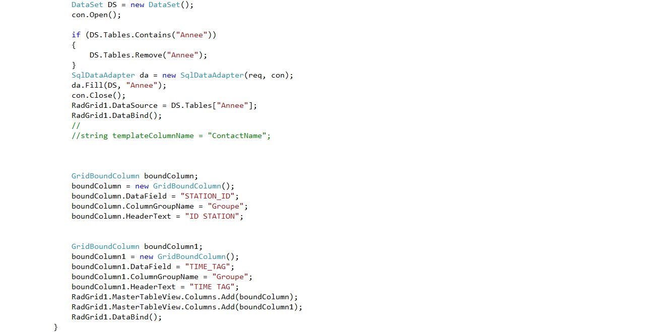 For creating a multi column headers programmatically you need to add GridColumnGroups to the MasterTableView'sColumnGroups collection. Afterwords, you need to set the ColumnGroupName property of the columns to match the Name property of the created GridColumnGroups: