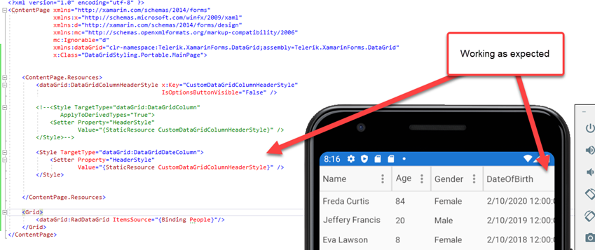 You can however use implicit styling for the final type. As an example, here's a screenshot using your DateTimeColumn style :