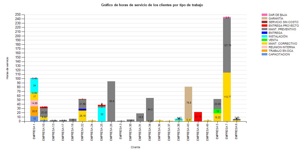 I want a chart with the hours of service of a company, I have three fields, HOURS_SERVICE, TYPE_SERVICE, COMPANY.