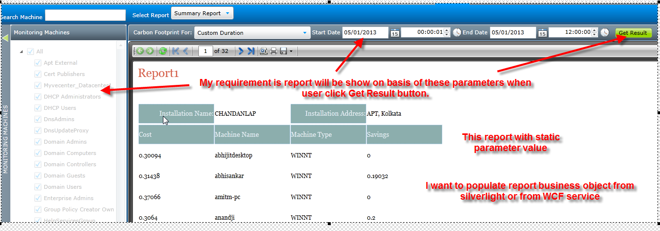 Can you please send me a sample application to do get data from WCF call back and populate report?