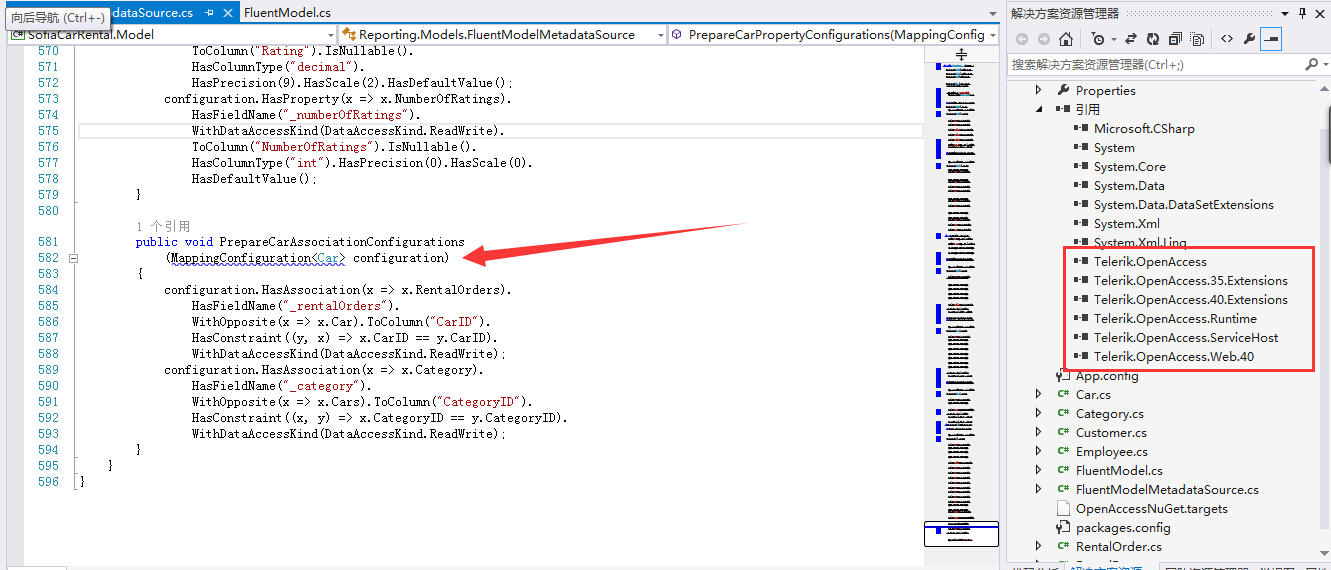Please check if the project covers Telerik Data Access requirements. Then test removing references manually and adding them via Nuget packages.