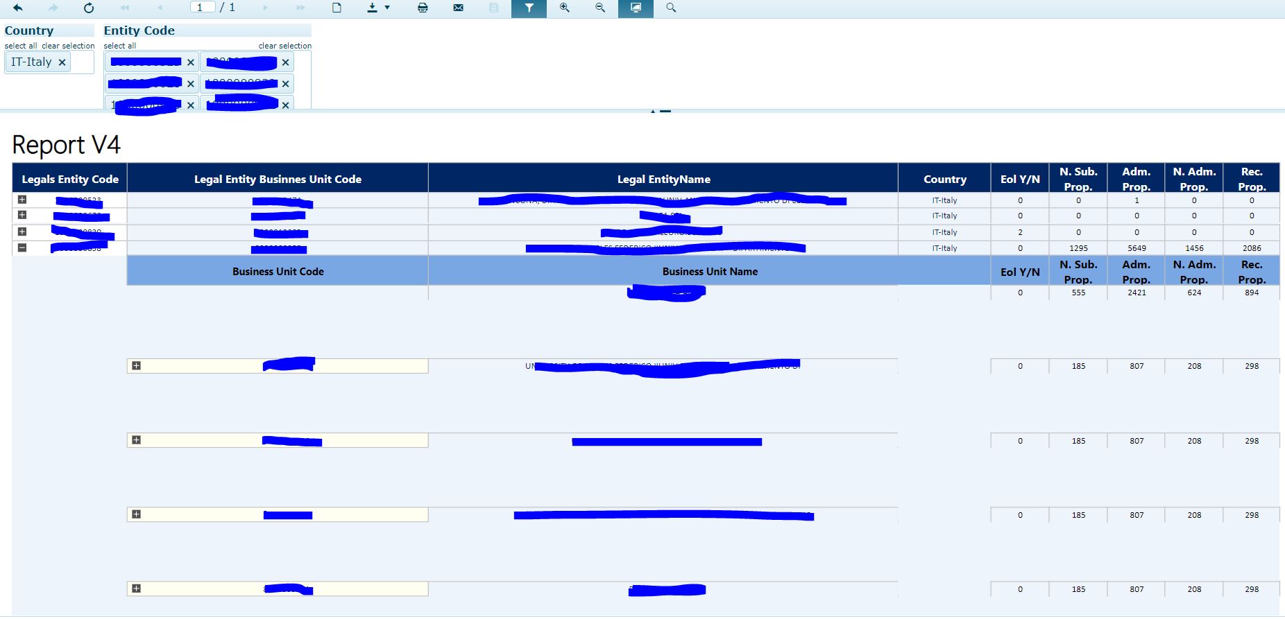 In case this approach does not help in your scenario please send us the report definition with some sample data, so we can check its exact settings and layout and provide you further suggestions.