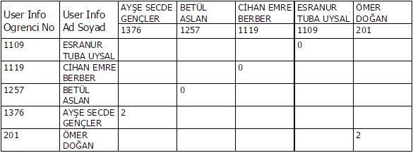 I like to make a crosstab but i have two problems and you can see the image that i attached.First one is that i want to group the names of both rows and columns by asc order i tried to do it but it doesnt work . Second problem is that i am trying to match them . I have the informations of who choose who and the choice order . For example , esra's first choice is omer and i want to write 1 to that cell . Would be grateful of any advice .