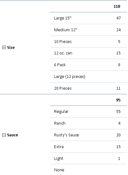 In the screenshot, I would like to be able to retrieve the value 110 or 95, so I can calculate the percentages like 47/110, 24/110, 5/110, etc. for each of the rows.