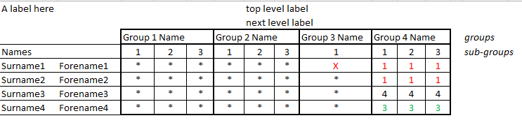 The child group column just has a numbered heading and needs be narrow, but sometimes the parent group only has one child group and that is making the overall column much too narrow to display the parent group heading legibly.
