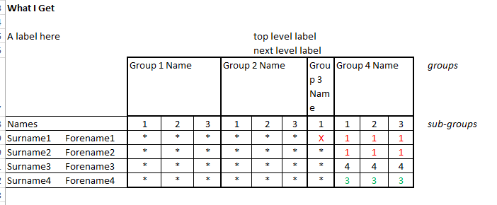 I have a crosstab report with 2 levels of column groups.