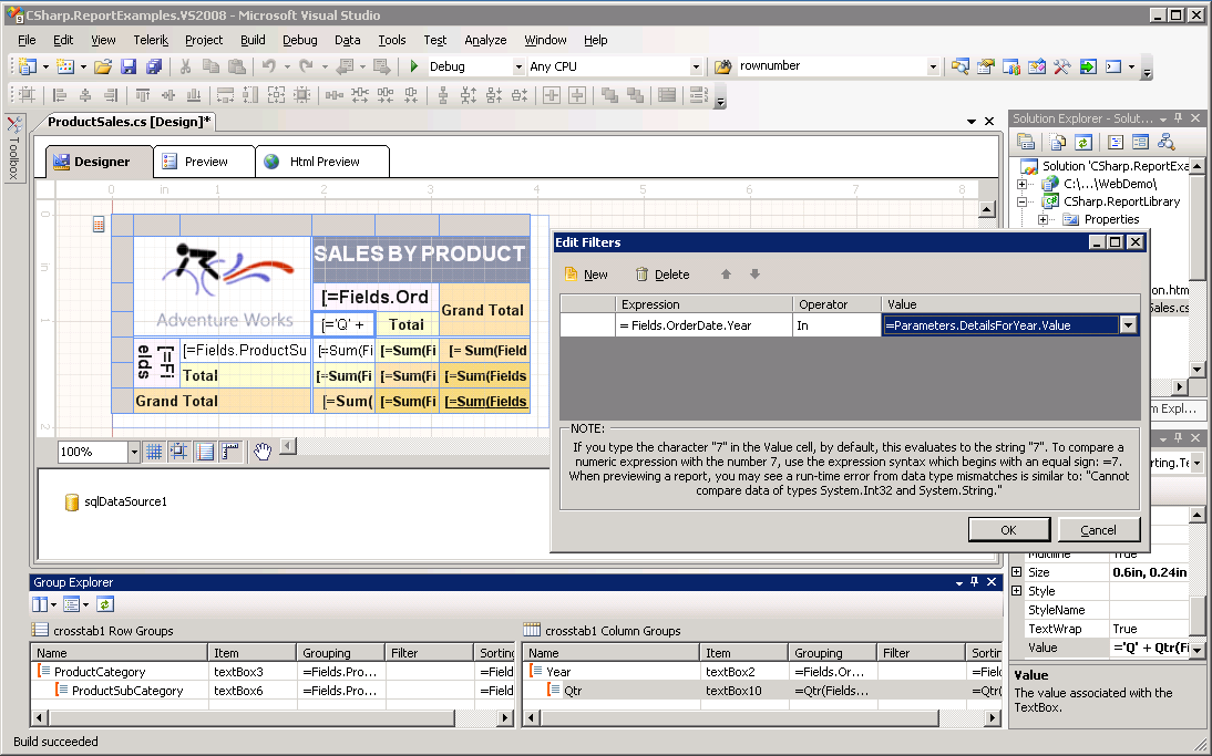 I'm trying to create a report that's very similar to the Crosstab example in the Telerik Reporting demo. (Please refer to that demo) Except that what I need to do is I want to hide Quarter columns for lets say year 2001, 2002, 2003 and only show the Totals columns for those years. For the 2004 grouping it should not hide the Quarter columns. I tried to set the hide each textbox in the ItemDataBound event by setting Visible=false on all the textboxes for that those years but it's not working. Does anyone know how to do it?