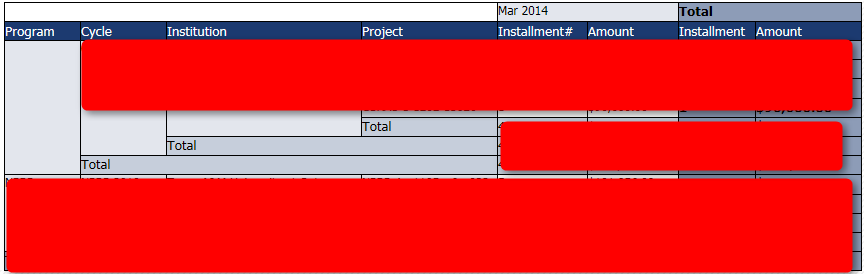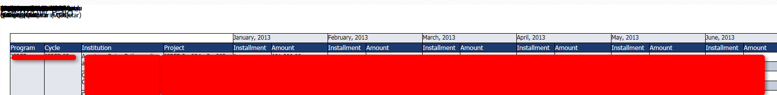 If I choos a period more than 12 months, the problem shows. A complete render issue with the columns are mixed and the report title will be hidden by many many columns and also the viewer will hang and the Export option will hang and if you tried to click on the export option a complete disaster happens when the whole solution stops working!!!!!