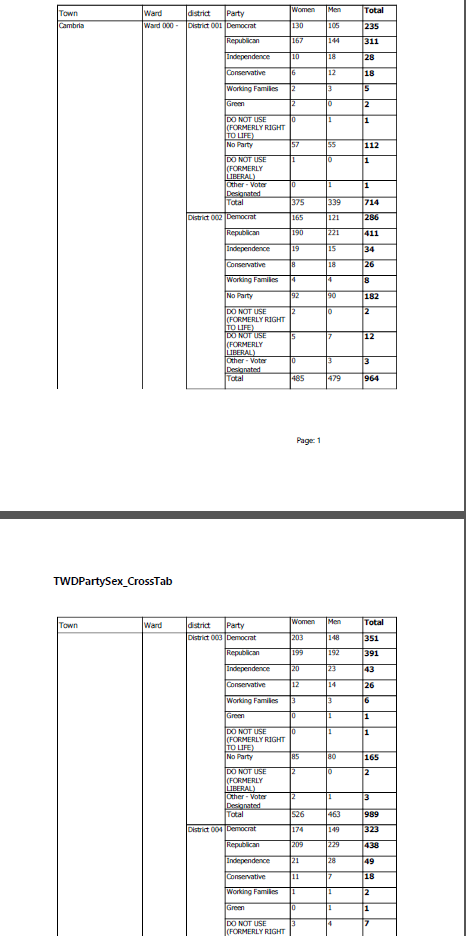 I created a simple CROSSTAB report via the Crosstab wizard. I am making sure that both RowHeadersPrintOnEveryPage and ColumnHeadersPrintOnEveryPage are set to TRUE, yet, it seems that when I print this report, only the COLUMN HEADERS are printing on every page, where as the Row Headers are not. As you can see in the example I have attached, the COLUMN HEADERS are re-printing on every page, but the ROW HEADERS are not ( TOWN & WARD column headers are missing on page 2)