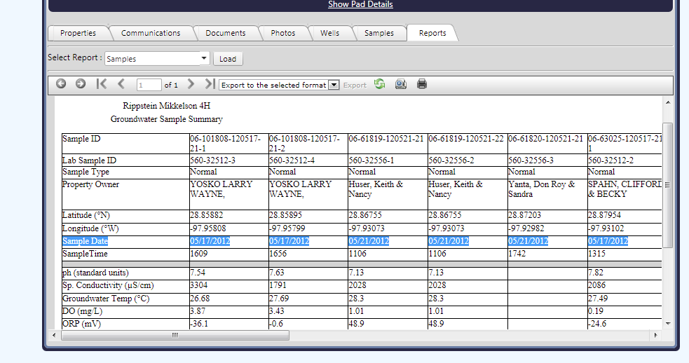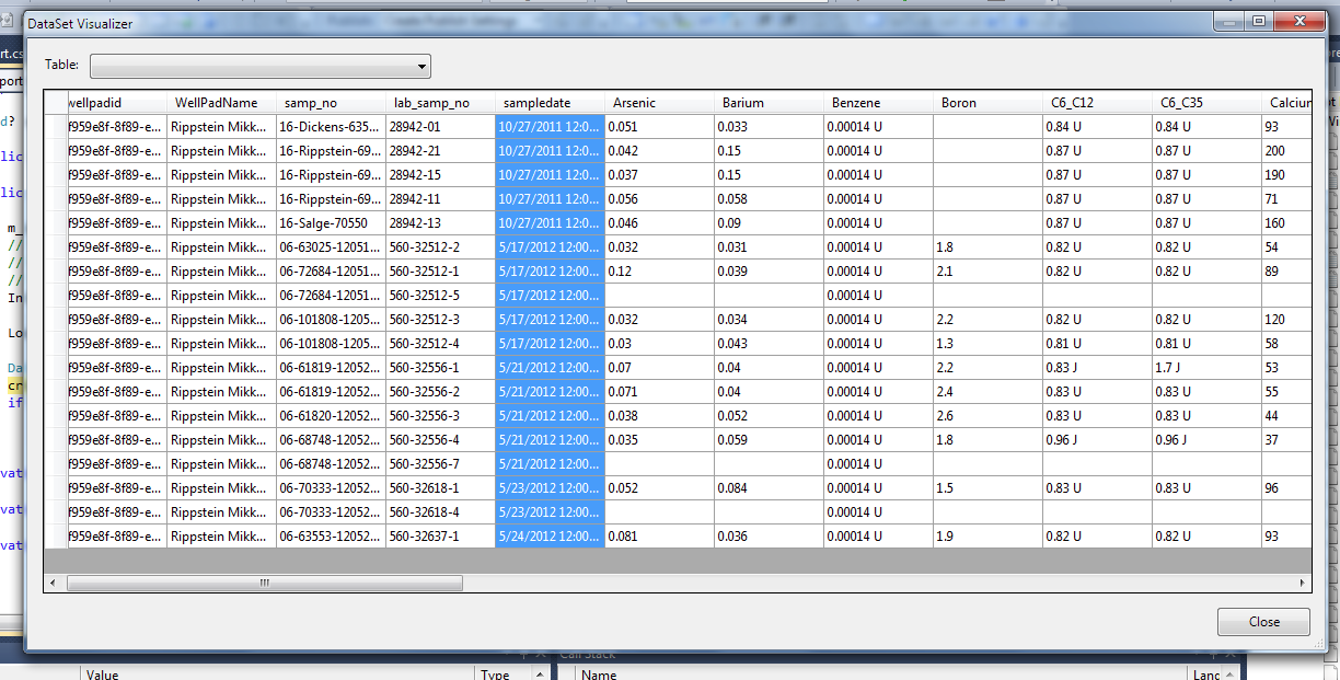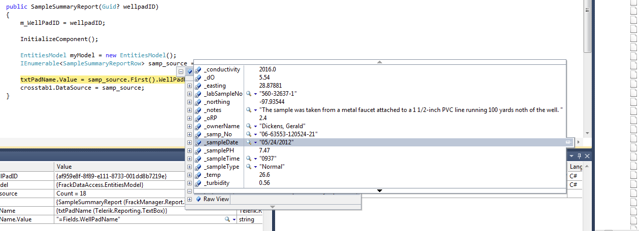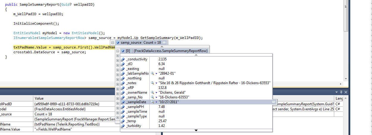 I have a crosstab table that I am binding to "Samples". Each sample has a date, I order these coming out of sql from oldest to newest (ie 01/01/11 comes before 02/01/11).