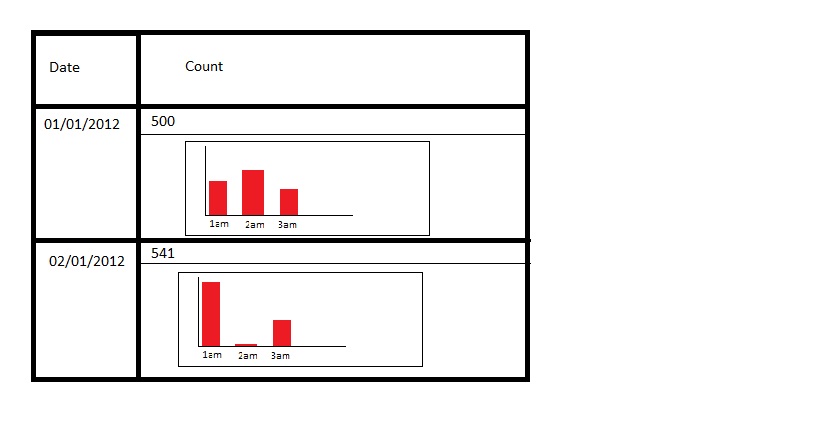 I've succesfully got a crosstab working where each row contains the date and number of log-on's for that date which is taken for a dataset containing a single table, e.g.