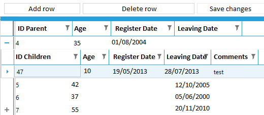 For example, I wan to create a parent row, then it children rows and save them. And I want to edit each cell of parents row or children row.