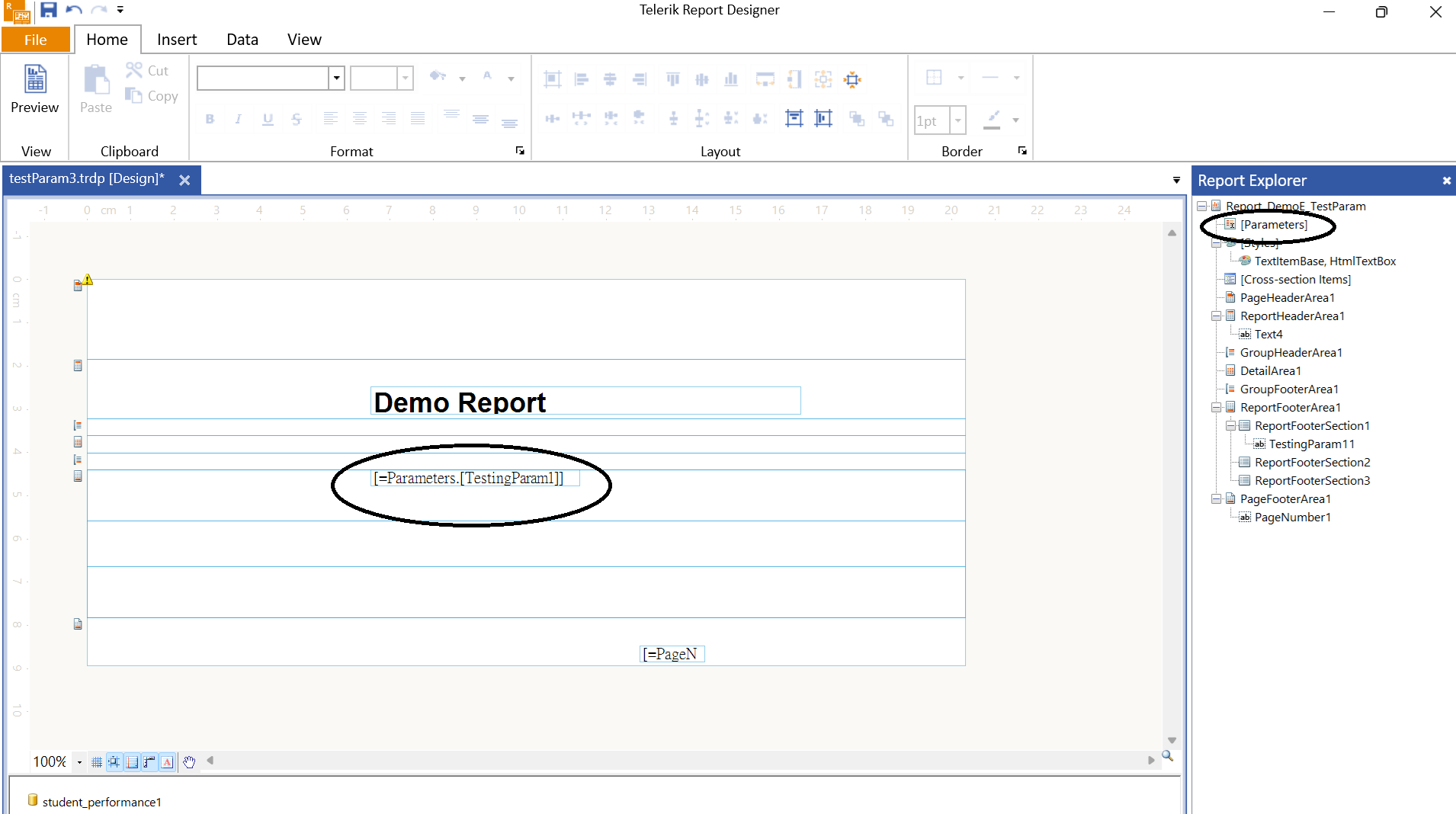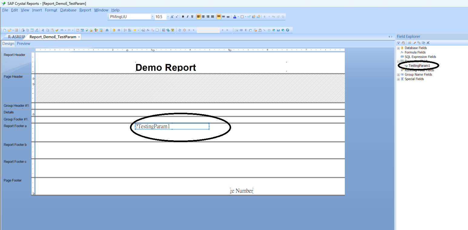 The target report : (No parameter can be found in Report Explorer, I have to install the parameter to make the start the preview(
