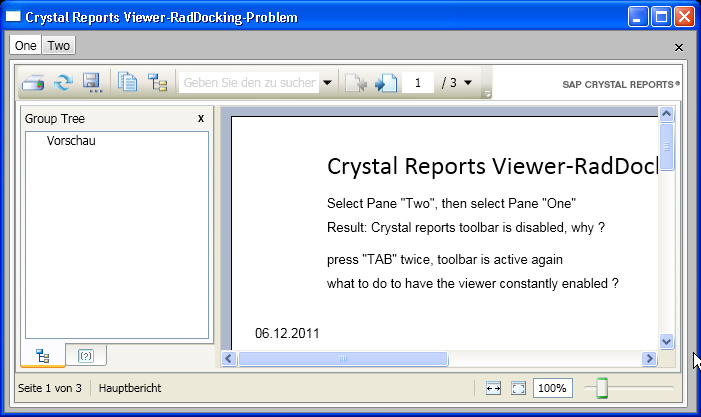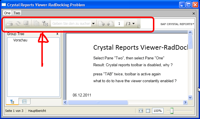 I've got a kind of "activation problem" or "focus problem" with the crystal reports viewer in a RadDocking pane.