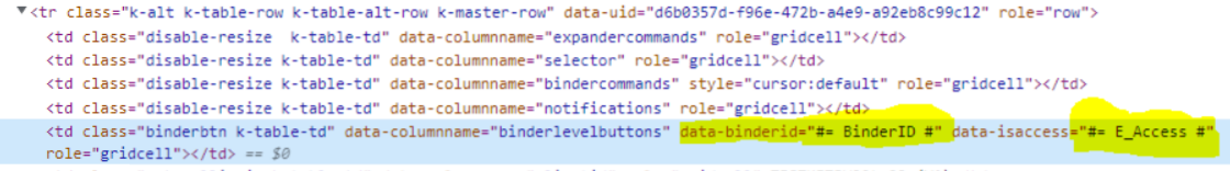 htmlAttr: new { @class = "binderbtn", data_columnname = "binderlevelbuttons",data_binderid = "#= BinderID #", data_isaccess = "#= E_Access #" },