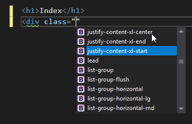 In order for the intellisense to work correctly, you need to load the css file (kendo.bootstrap-v4.css) containing all the Kendo classes locally: