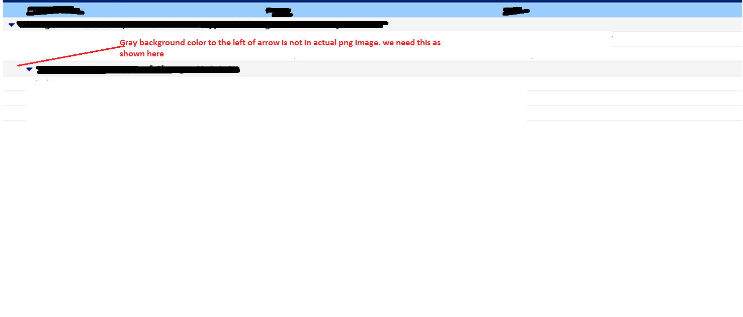 Please find the attached actual and expected png images. Actual image does not have gray background to the left of the arrow image of detail table. We would like to know the css so that actual image has gray background as expected image.