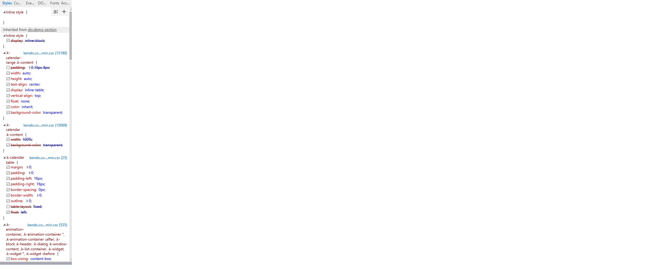 Hi, I am trying to make my calendar 3 months view with padding of 16px just like the demo. But its not working, some Telerik css is overwriting it. Even if I try to force it inline for each month its not working.