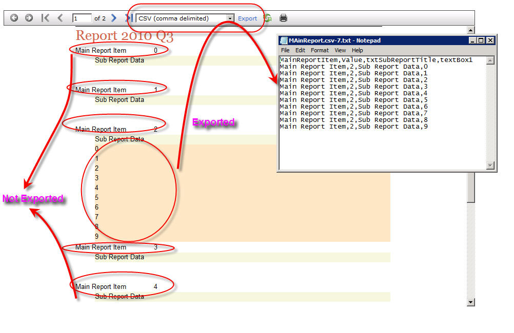 When exporting to CSV the only Report Items that get exported are items that have Sub Reports.