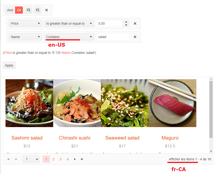 I changed the demo code to show that the grid widget getting the messages in the right language (fr-CA) while the filter widget remains in en-US.