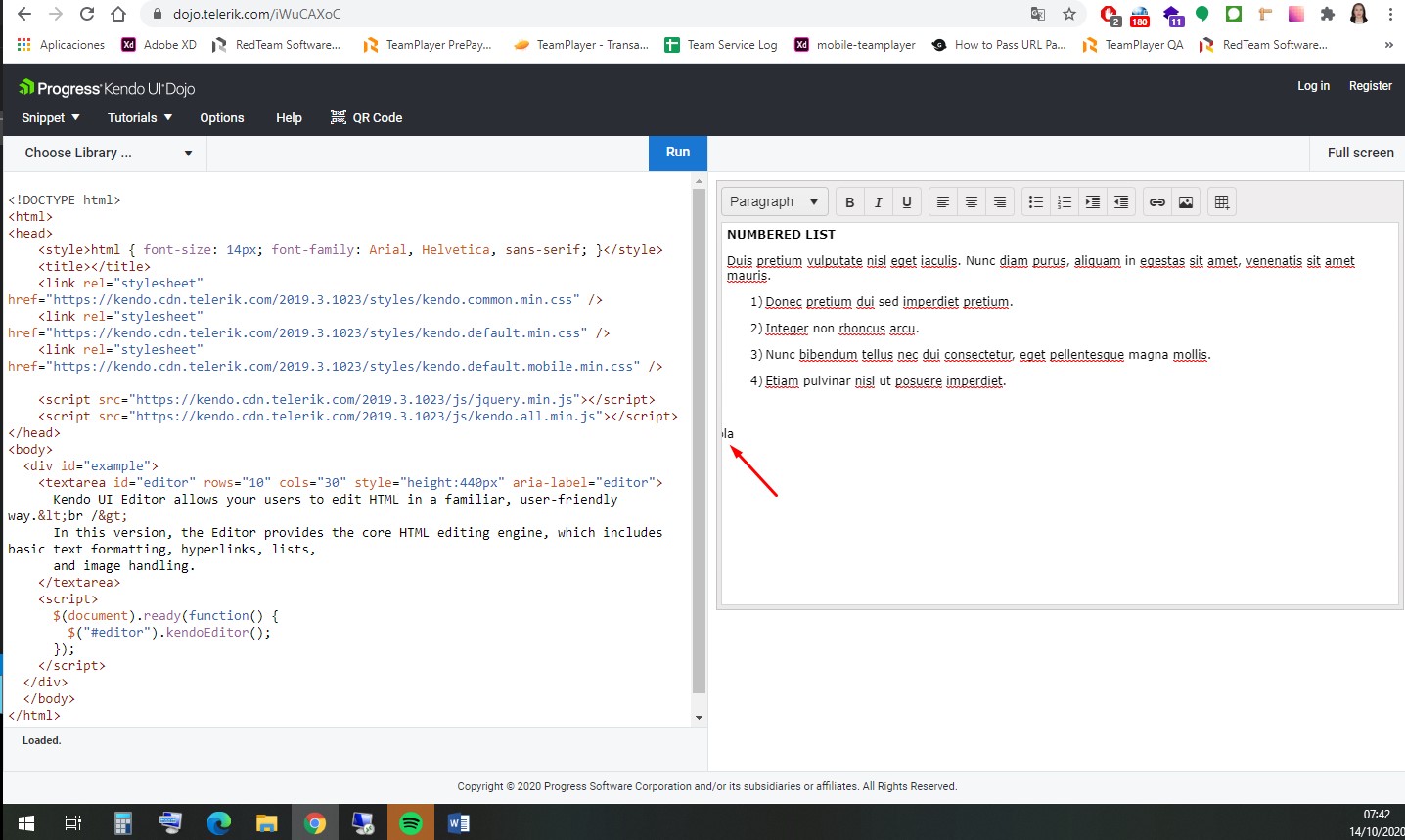 Here's the previously linked dojo example modified to include an ordered list: https://dojo.telerik.com/iWuCAXoC/7