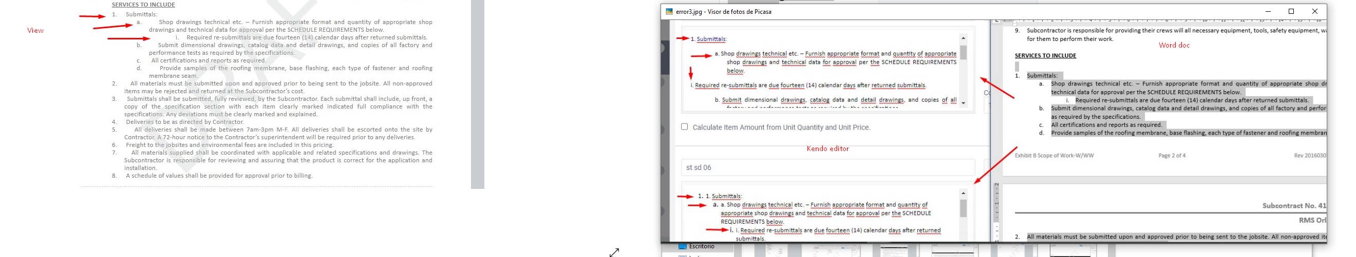 2. The indentation is not respected with the change of the numbering, from numbers to letter or bullet.