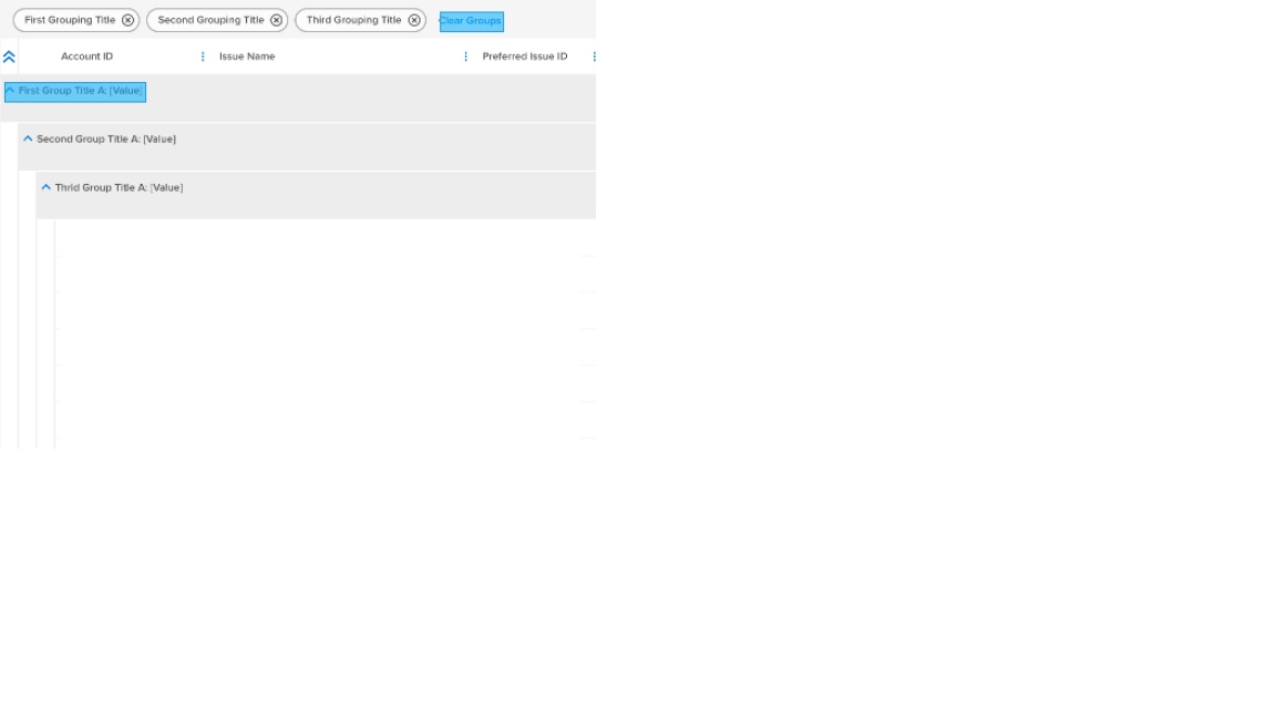 3. I am not sure I completely understand that part. The grey bar that contains the group name and the row value is displayed when at least one group is set, and not displayed if no groups are set. Could you please elaborate a bit more what I am missing here?