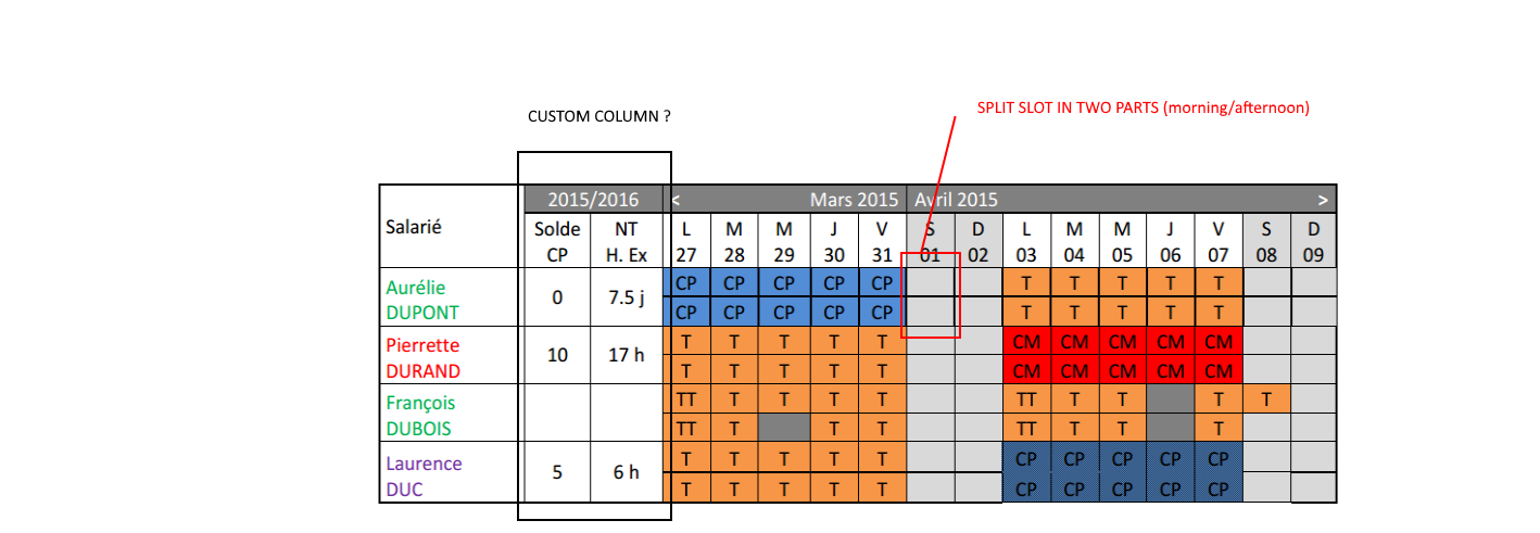 - have a time scale with two only two slot (morning/afternoon)