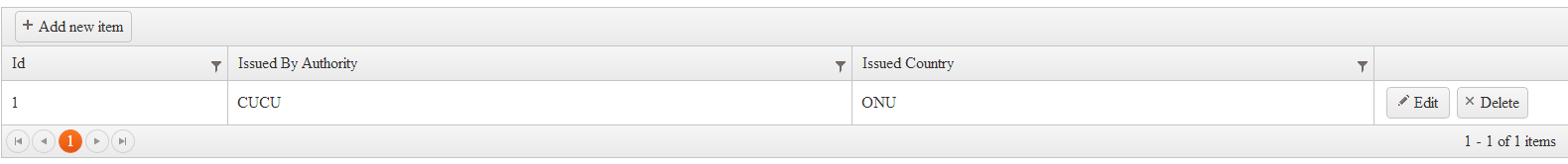 The problem appears when we try to edit again: when switching the row to edit mode, the combox does not display the text (the Description property of the Country), but the Id; even so, if we delete the number in the combox, the filtering works again, and also the updating.