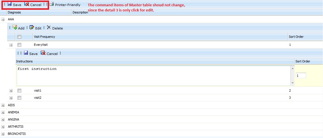 Please disregard my problem below. I already figured it out why is the master table command items changes, every time i click on edit in any detail table.