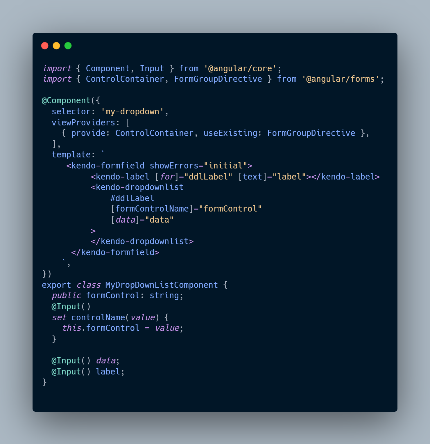 I have a kendomulticombobox in a form, I use this combobox in several forms, and to avoid copying and pasting, I thought of setting up a separate component for that, and just call it each time I need.