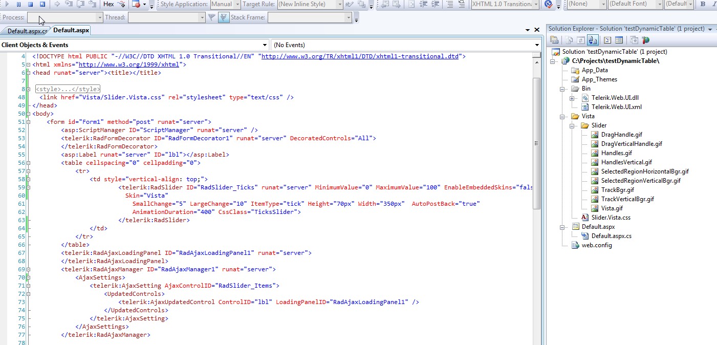 I am trying to use a custom css for slider control for that I created new theme folder with name SliderCustom, inside I pasted the CSS and Images from default skin and changed the name of css like "Slider. SliderCustom.css" and changed all the css class name as well. but while I am refereing this custom css, the track bar and drag hand is getting disappear, here I hav attached a screen shot of my code sample, please let me know how can I fix this issue?