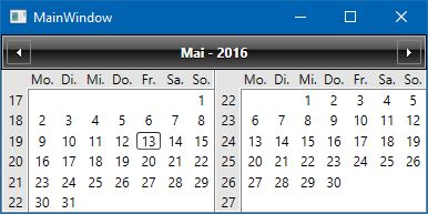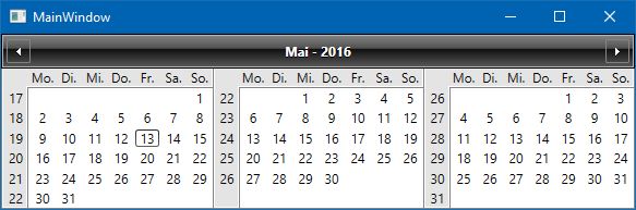 Imports Telerik.Windows.Controls.CalendarClass MainWindow Private Const MinCalendarWidth = 150 Public Sub New() ' This call is required by the designer. InitializeComponent() ' Add any initialization after the InitializeComponent() call. cal.DayButtonStyle = Nothing cal.DayButtonStyleSelector = New CDayStyleSelector() End Sub Protected Overrides Sub OnRenderSizeChanged(sizeInfo As SizeChangedInfo) MyBase.OnRenderSizeChanged(sizeInfo) Dim CalendarColumns = Math.Max(1, CInt(Math.Floor(sizeInfo.NewSize.Width / MinCalendarWidth))) If cal.Columns <> CalendarColumns Then cal.Columns = CalendarColumns End If End Sub Private Class CDayStyleSelector Inherits StyleSelector Private _HideButtonStyle As New Style Public Sub New() _HideButtonStyle.Setters.Add(New Setter(VisibilityProperty, Visibility.Collapsed)) End Sub Public Overrides Function SelectStyle(item As Object, container As DependencyObject) As Style Dim Content = TryCast(item, CalendarButtonContent) If Content IsNot Nothing AndAlso Content.ButtonType = CalendarButtonType.Date Then If Not Content.IsFromCurrentView OrElse Content.IsInAnotherView Then Return _HideButtonStyle 'Hide all Buttons of other months End If End If Return MyBase.SelectStyle(item, container) End Function End ClassEnd Class