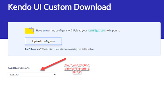 I am trying to use https://www.telerik.com/download/custom-download (Custom downloader) for jQueryUI for the latest version 2026.1.212 but none of the checkboxes are appearing or the download button.