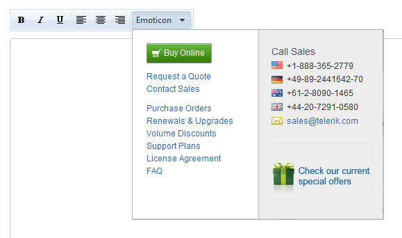 Can I do this with the toolbar component? If not, what Telerik components should I use to accomplish this task?