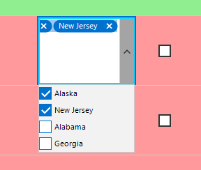What I get is a an empty dropdown in the cell with no data appearing. Ideally I'd like to instantiate the custom control and pass in the DataSource, ValueMember, etc. so I can reuse it elsewhere. The goal is to retrieve a list of selected states and display them like this when the cell is not in edit mode: