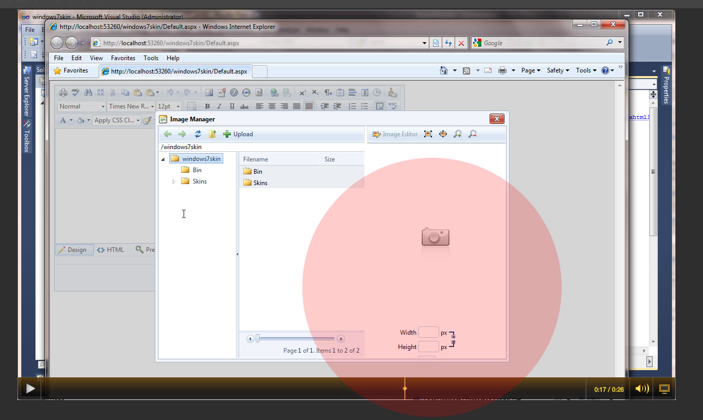 Please see attached JPG for issue with the Image Preview... I cannot access properties or insert the image as it's not picking up the correct styles. I copied the skin directly from my installation folder and have not changed anything.