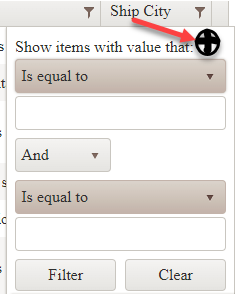 What I actually want is a option to add multiple filters for a specific columns. When ever user clicks on the filter funnel he will be given with one or 2 filter criteria that he can choose and with a button or option to add more filters to the same column if he wants.