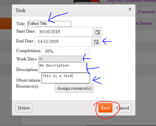 3) When I edit some values (for example, the title of the task) and then click on the "save" button, It doesn't save the modified value :(