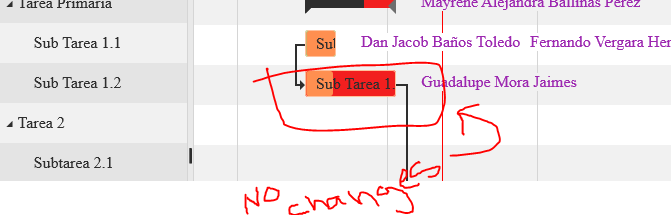 I have set up this Dojo example, and some images to clarify my problem. Just double click on "Sub Tarea 1.2" and make some changes