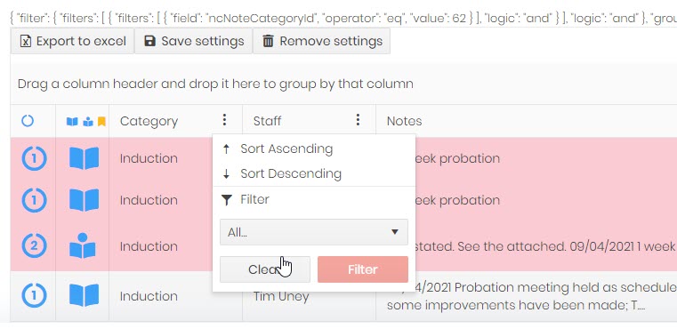 and we can see it clearly in the settings for the grid and the Category column shows it has been applied.