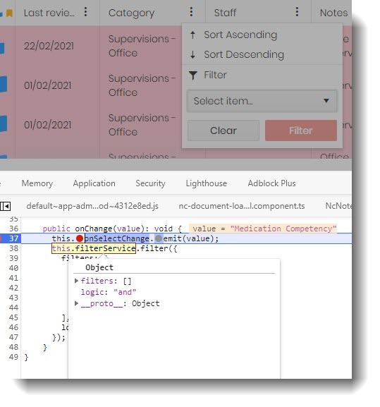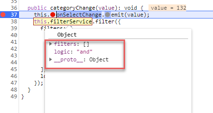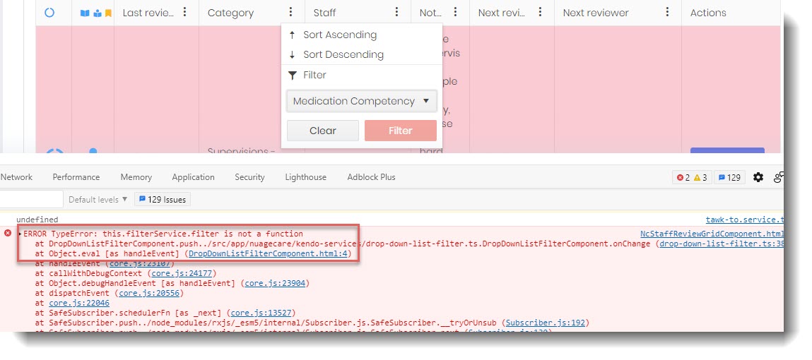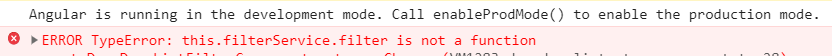As soon as I hit the drop down component the filter service has no method for filter just the actual filter values.