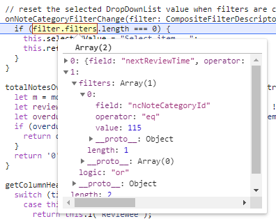 I'm very close now but I need to find a way to find the filter on "ncNoteCategoryId" and remove it from the filters array.