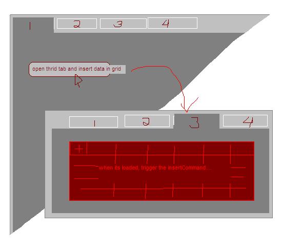I searched a while for this issue and can't seem to find. I have a multipage radtabstrip. When i click a radbutton in the first tab, i want the thrid one to open, load data, then trigger the insert command in the grid inside the 3rd tab.