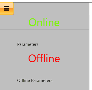 <local:CustomNavigationViewx:Name="customNavigationView"IsPaneOpen="True"PaneOpened="CustomNavigationView_PaneOpened"PaneClosed="CustomNavigationView_PaneClosed"><telerik:RadNavigationView.Items><!--The OnlineUserControl and OfflineUserControl hold several elements such as TextBlocks and separators--><local:OnlineUserControl/><telerik:RadNavigationViewItemContent="Parameters"/><local:OfflineUserControl/><telerik:RadNavigationViewItemContent="Offline Parameters"/></telerik:RadNavigationView.Items></local:CustomNavigationView>
