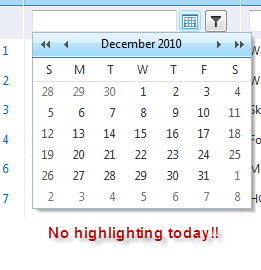I was wondering if there is a way to apply a global skin for shared calendars, eg the popup calendar on the DatePicker in the grid filtering column. I currently have the following in my skin file which is working for all Calendars of DatePickers, but the calendar in the grid filtering column appears to be of type SharedCalendar and is not rendering the same. I can do it with code in the OnItemDataBoundEvent for the grid, but I have a lot of grids as well as some that are generated at runtime..