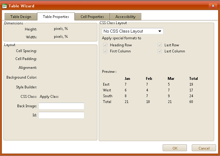 I have the custom skin files registered using the following .css file and by using the DialogsCssFile property. But it seems like I am missing something or some reference as there are several problems with the dialogs. For example, when I open the Table property dialog it looks like the attached image (unusable).