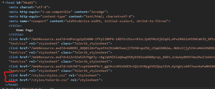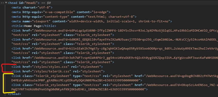 When Telerik control is invisible on initial page load and postback occurs, our css files are overwritten using webresource.axd added after are links.