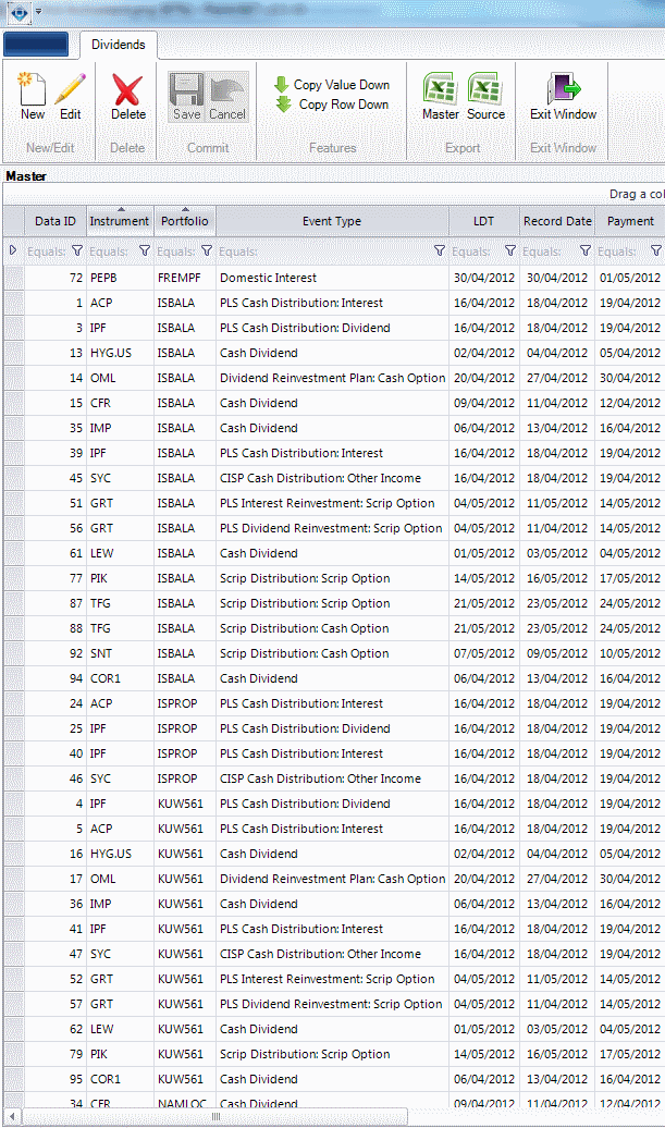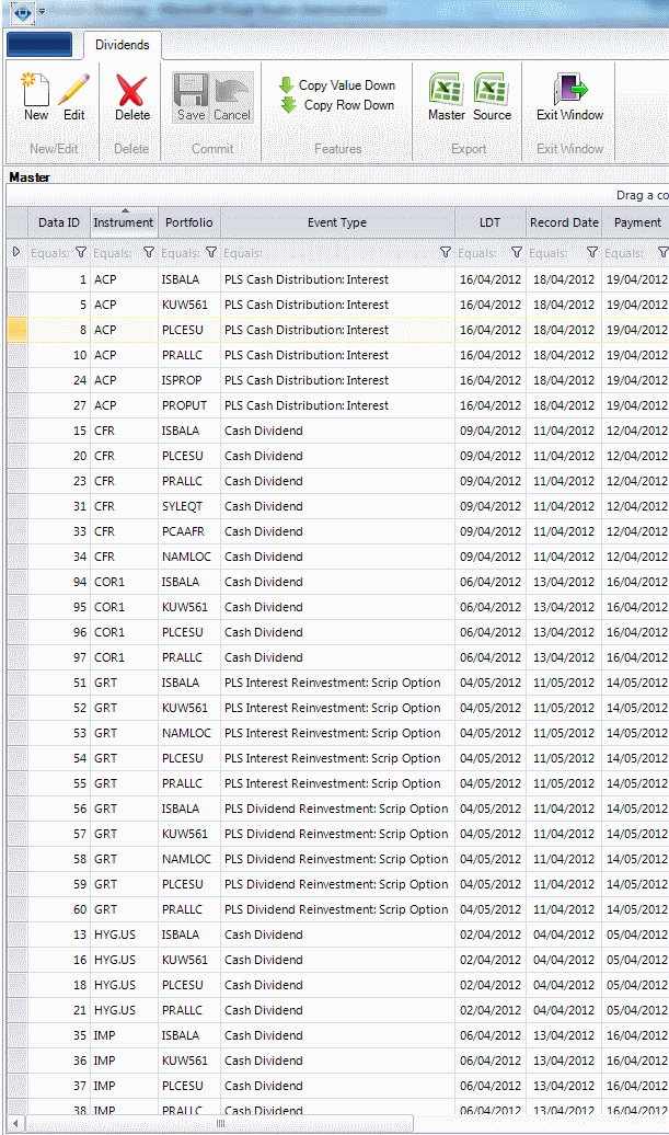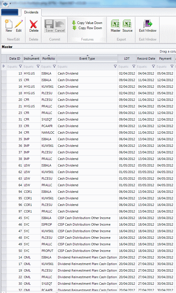 2. Shift+Click Portfolio - pressed and held shift down, clicked on portfolio, now grid sorted only according to portfolio, Instrument still has sort header image although sorting not on that column occurs anymore