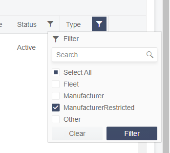I then looked at adding a checkbox filter to this column so that all the possible enum values would be shown as checkboxes. I have managed to do this by adding a FilterMenuTemplate with a TelerikCheckBoxListFilter to the GridColumn like so: